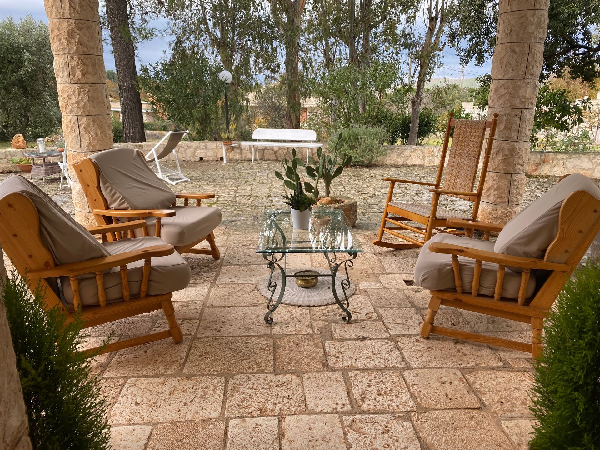 La vegetazione esterna è molto bella e varia, dall'ombra dei pini agli ulivi agli alberi da frutto e le piante che circondano la casa-